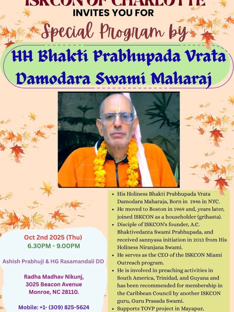 Oct 02: HH Bhakti Prabhupada Vrata Damodara Swami Maharaj